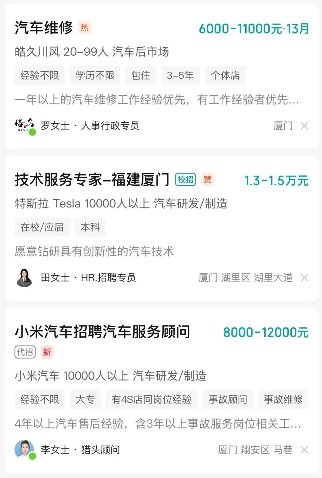 薪资比传统汽修高30%,初级技师月薪 8000-12000元,中级技师15000-25000元,高级技师或主管年薪可达30万+。